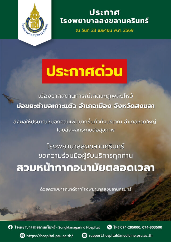 ประกาศแนวทางปฏิบัติเหตุเพลิงไหม้ในจังหวัดสงขลา