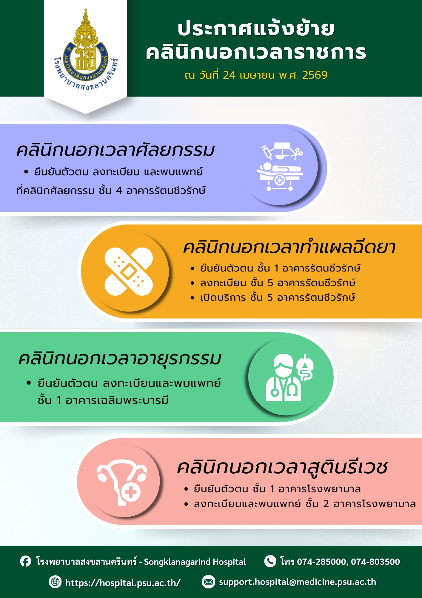 ประกาศแจ้งย้ายคลินิกนอกเวลาราชการ