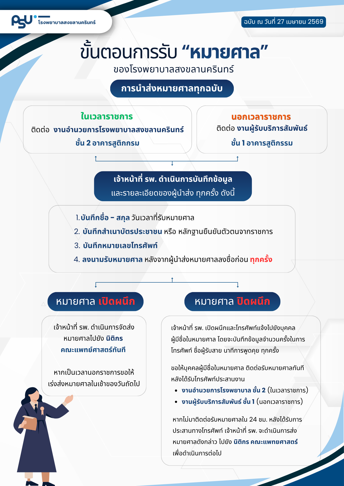 ขั้นตอนการรับหมายศาลโรงพยาบาลสงขลานครินทร์