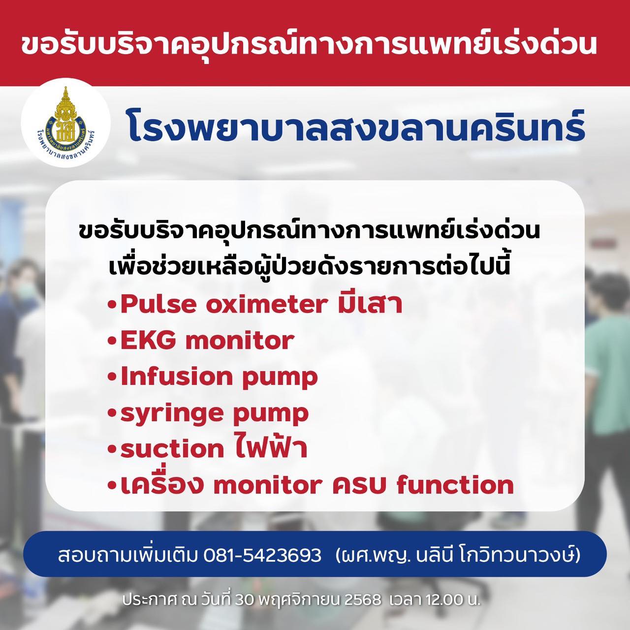 โรงพยาบาลสงขลานครินทร์ ขอรับบริจาคจนถึง วันเสาร์ที่ 6 ธันวาคม 2568