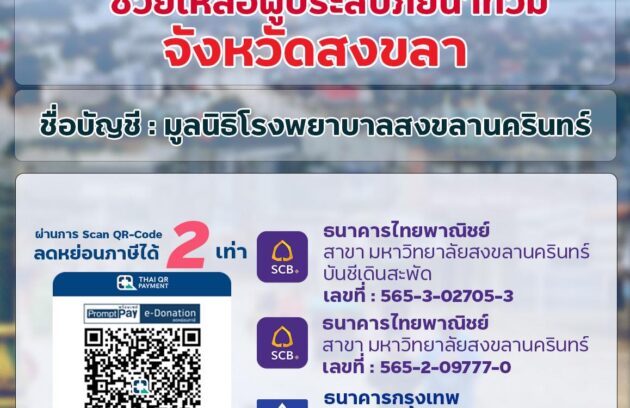 กิจกรรมเวทีสุขภาพ เสวนาเรื่อง “รวมพลังส่งกำลังใจให้ก้าวผ่านมหาอุทกภัย 2568 สู่อนาคต 2569” กิจกรรมเวทีสุขภาพ วันพฤหัสบดีที่ 25 ธันวาคม 2568 เวลา 08.30 – 11.00 น.ณ ลานเวทีสุขภาพ ชั้น 1 โรงพยาบาลสงขลานครินทร์…
